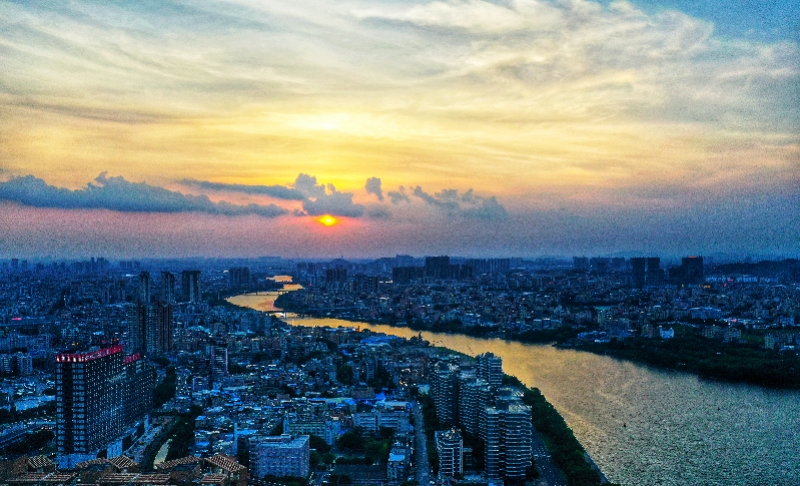 番禺区亚运大道附近的日落时分的情景。黄善祥 摄